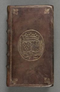 SEMAINE SAINTE] - L'Office de la Semaine Sainte, selon le Messel et Bréviaire Romain, et pour les âmes dévotes du diocèse de Paris. Paris, Jean Villette, 1690. In-12, (6) ff., 851 (1) pp., papier jauni, ressauts de cahiers, pl. maroquin grenat de l'ép., triple fil. dor. sur les plats, armoiries au centre, dos à nerfs orné de fleurs de lis, tr. dor., rest. en haut et bas du dos. Aux armes de Charlotte-Elisabeth de Bavière, Princesse Palatine (1652-1722) seconde épouse de Philippe d'Orléans, frère de Louis XIV et mère du Régent. Elle a laissé des mémoires vifs et spirituels sur la vie privée de Louis XIV et son entourage. OHR pl. 2564, variante.