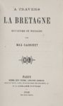 RADIGUET, Max - A Travers la Bretagne. Souvenirs et paysages. Paris, Michel Lévy, 1865. In-12, …