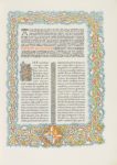 Viader i Llor.. Sant Feliu de Guíxols: Estampa de n´Octavi Viader, 1920-21. 2 vol. en gran folio. I: 1 p. facsímil en negro de la edición de 1490, 1 p. en color + 177 fol. a dos tintas + 36 p. de índice. II: 1 facsímil de la edición de 1490 en negro, 1 p. color+ 203 fol. a dos tintas + 10 p. de índice a dos tintas. Ilustr. con capitales y culs-de-lampe; texto a dos columnas. 2 vol. enc. en pergamino decorado, corte superior dorado. Edición numerada de 460 ejemplares sobre papel de hilo con marca de aguas del impresor en cada pliego.