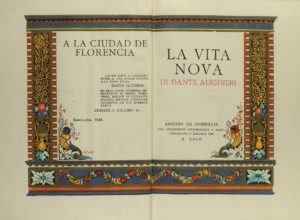 .1924.. LIBRO: .(BIBLIOFILIA).. .ALIGHIERI, DANTE:. .LA VITA NOVA.. Edición de homenaje preparada y dirigida por A. Saló. Barcelona: s.imp., 1924. 4º menor. 108 p., 1 h. Texto con orla coloreada a mano. Enc. en tela edit., con funda en tela...