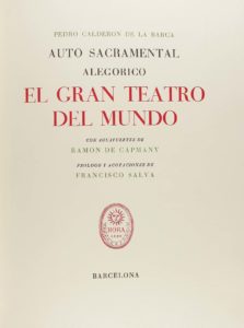 .1944.. LIBRO: .(BIBLIOFILIA).. .CALDERON DE LA BARCA, PEDRO; CAPMANY, RAMON [Ilustrador]:. .AUTO SACRAMENTAL ALEGORICO. EL GRAN TEATRO DEL MUNDO.. Prólogo y anotaciones de Francisco Salva. Barcelona: Hora Luen, 1944. Folio mayor. XV + 119 p.+ 3 h.+...