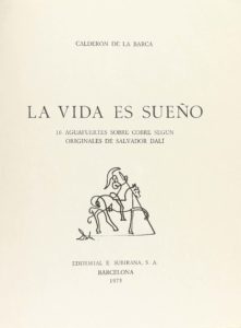 .1975.. LIBRO: .(BIBLIOFILIA).. .BARCA, CALDERÓN DE LA; DALÍ, SALVADOR (ilustr.) :. .LA VIDA ES SUEÑO. 16 AGUAFUERTES SOBRE COBRE SEGÚN ORIGINALES DE SALVADOR DALÍ.. Barcelona: Ed. E. Subirana, 1975. Folio mayor. 145 p. + 3 h. Ejemplar Z firmado...