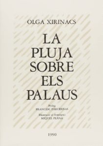 .1990.. LIBRO: .(BIBLIOFILIA).. .XIRINACS, OLGA:. .LA PLUJA SOBRE ELS PALAUS. Pròleg de Frances PARCERISSAS.. Olot: Ed. Miquel Plana, 1990. 4º mayor. 82 p. Frontis y grabado titulado ´Ara lou a Venècia´ original de MIQUEL PLANA. Cubiertas en...
