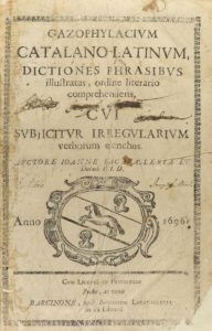 .1696.. LIBRO: .(LINGÜÍSTICA-CATALÁN).. .LACAVALLERIA I DULAC, JOAN:. .GAZOPHYLACIUM CATALANO-LATINUM, DICTIONES PHRASIBUS ILLUSTRATAS, ORDINE LITERARIO COMPREHENDENS CUI SUBJICITUR IRREGULARIUM VERBORUM ELENCHUS.. Barcinone: apud Antonium...