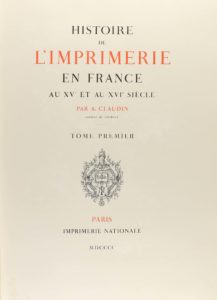 .1900-1914.. LIBRO: .(BIBLIOFILIA- BIBLIOGRAFÍA).. .CLAUDIN, A.:. .HISTOIRE DE L´IMPRIMERIE EN FRANCE.. Paris: Imprimerie Nationale, 1900, 1901, 1904 y 1914. 4 vol. en gran folio. I: 4 h. + D (4 p. marcadas de la A a la D) + XXIV + 490 p. Ilustr....