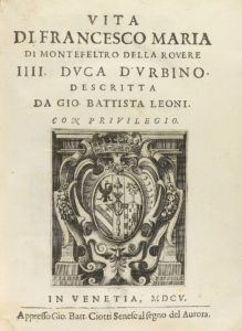 .1605.. LIBRO: .(BIOGRAFÍA-HISTORIA).. .LEONI, GIO. BATTISTA:. .VITA DI FRANCESCO MARIA DI MONTEFELTRO DELLA ROVERE IIII DUCA D´URBINO.