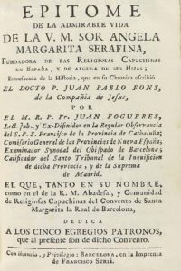 .1743 ca.. LIBRO: .(HAGIOGRAFÍA-MANRESA).. .FONS, JUAN PABLO:. .EPITOME DE LA ADMIRABLE VIDA DE LA V.M. SOR ANGELA MARGARITA SERAFINA, FUNDADORA DE LAS RELIGIOSAS CAPUCHINAS EN ESPAÑA, Y DE ALGUNAS DE SUS HIJAS; ENTRESACADA DE LA HISTORIA QUE EN SU...