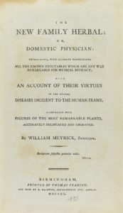 .1790.. LIBRO: .(MEDICINA-HERBOLOGIA).. .MEYRICK, WILLIAM:. .THE NEW FAMILY HERBAL; OR, DOMESTIC PHYSICIAN: ENUMERATING, WITH ACCURATE DESCRIPTIONS, ALL THE KNOWN VEGETABLES WHICH ARE ANY WAY REMARKABLE FOR MEDICAL EFFICACY.... Birmingham: Printed by...