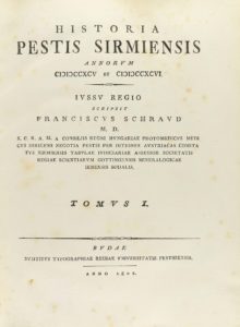 .1802.. LIBRO: .(MEDICINA).. .SCHRAUD, FRANCISCUS:. .HISTORIA PESTIS SIRMIENSIS ANNORUM [1795] ET [1796].. Budae: Typ. Regiae Universitatis Pesthiensis, 1802. 3 vol. I: LXVI p. + 202 p. + X lám. plegadas. II: 1 h. + 337 p. ilustr. con numerosos...