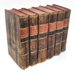 24 h. + 488 p. II: 14 h. + 468 p. III: 24 h. + 618 p. IV: 10 h. + 211 p. + 15 h. + 288 p. V: 12 h. + 223 p. + 16 h. + 286 p. VI (índices): 2 h. + 550 p. Cada parte y partida con portada propia. Capitales y culs-de-lampe xilografiados. Seis vol. enc. en pasta española, tejuelo, cortes pintados. Palau 7097.
