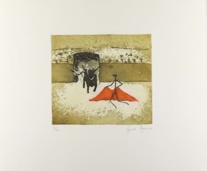 Aguirre de tema taurino, todas numeradas y firmadas. Ejemplar en papel de hilo de la tirada de 125, numerados y firmados por el artista, de un total de 155. Presentado en petaca de catoné edit. Este ejemplar además lleva una dedicatoria a lápiz del artista.