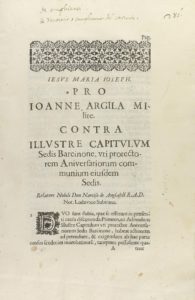 Capitulum sedis Barcinone, uti protectorem aniversariorum communium eiusdem sedis .(con alguna anotación marginal de época).; Pro Iosepho Albaret, et Feu mercatore contra Ioannem Baptistam Ballestra patronum genuensem; Nobilibus coniugibus D. Hieronymo et D. Maria Ribes, et de Boxados contra diversos creditores haereditatis Thomae de Boxados; Iuridica allegatio pro Michaele Salvador Mercatores cive Barcinonae..