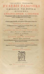.1658.. LIBRO: .(HISTORIA).. .CAESAREAE PALESTINAE, EUSEBII PAMPHILI:. .THESAURUS TEMPORUM... EPISCOPI CHRONICORUM CANONUM Omnimodae historiae libri duo, interprete Hieronymo... Opera ac studio JOSEPHI JUSTI SCALIGERI.... Amstelodami, Lugduni...