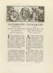 .1700.. LIBRO: .(HISTORIA-SUCESIÓN).. .TESTAMENT DE CHARLES II ROY D´ESPAGNE, FAIT LE 2 D´OCTOBRE 1700.. Paris: Imp. Frederic Leonard, 1700. 4º menor. 76 p. + 2 h. Texto a dos columnas en castellano y francés. Bonita cabecera dibujada por B....