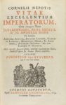 .1734.. LIBRO: .(HISTORIA-BIOGRAFÍA).. .BOSSI, JO. ANDR.:. .CORNELII NEPOTIS VITAE EXCELLENTIUM IMPERATORUM, cum integris notis Jani Gebhardi, Henr. Ernstii.... Lugduni Batavorum: Samuelem Luchtamans, 1734. 8º mayor. 16 h. (incluido frontis grabado...