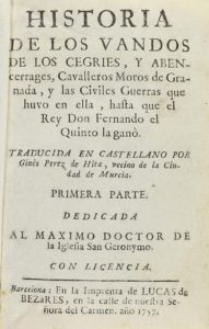 .1757.. LIBRO: .(HISTORIA).. .PEREZ DE HITA, GINÉS:. .HISTORIA DE LOS VANDOS CEGRIES, Y ABENCERRAGES, CAVALLEROS MOROS DE GRANADA, Y LAS CIVILES GUERRAS QUE HUBO EN ELLA, HASTA QUE EL REY DON FERNANDO EL QUINTO LA GANÒ.. Barcelona: Imp. Lucas...