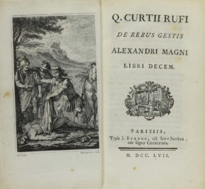 .1767.. LIBRO: .(HISTORIA ANTIGUA).. .RUFI, Q. CURTII:. .DE REBUS GESTIS ALEXANDRI MAGNI.. Parisiis: Typ. J. Barbou, 1767. 8º menor. XV + 557 p. + 1 h. Frontis, cabeceras y culs-de-lampe grabados. Enc. en plena piel, hilos, cantos y cejas dorados,...