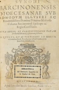 .1600.. LIBRO: .(HUMANIDADES).. .SYNODI BARCINONENSIS DIOCESANAE SUB ADMODUM ILLUSTRI AC REVERENDISSIMO DOMINIO DOMINO ILDEFONSO COLOMA BARCINONESI EPISCOPO AC REGIO CONSILIARIO.. Barcinone: Apud Haeredes Iacobi Cendrat, 1600. 8º mayor. 4 h. + 268...