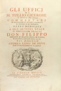 .1756.. LIBRO: .(FILOSOFÍA-CLÁSICOS).. .CICERONE, M. TULLIO:. .FLI UFFICI DI... E SOPRA DI ESSI COMMENTARI DI GIURISPRUDENZA D´ETICA FILOSOFICA DI POLITICA E DI FILOLOGIA.. Traducción italiana por Andrea Luigi de Silva. Firenze: Apresso Andrea...