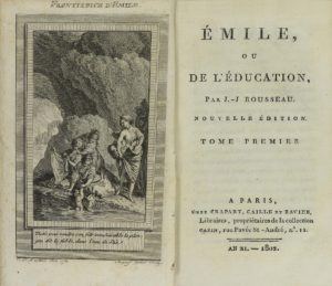 .1802.. LIBRO: .(FILOSOFÍA).. .ROSSEAU, J.J.:. .ÉMILE OU DE L´ÉDUCATION.. Paris: Chez Crapart, 1802. 5 vol. en 12º. I: Frontis + 372 p. + 5 lám. II: 285 p. + 4 lám. III: 258 p. + 3 lám. IV: Frontis + 332 p. + 2 lám. V: Frontis + 227 p. Cinco...