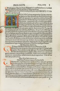 .1497.. LIBRO: .(INCUNABLE-EPÍSTOLAS).. .FICINI, MARSILII:. .EPISTOLAE FAMILIARES.. [Nuremberg:] Anton Koberger, 1497. 8º mayor. 7 h. (de 10) + CCXLIII fol. Todas las capitales realizadas en rojo a mano, la primera decorada con azules y dorados....