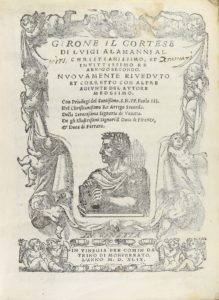 .1549.. LIBRO: .(LIBRO DE CABALLERÍAS-ITALIA).. .ALAMANNI, LUIGI:. .GIRONE IL CORTESE DI... Nuovamente et corretto con altre agiunte del autore medesimo.. Vinegia: Comin da Trino di Monferrato, 1549. 4º menor. 8 h. + 185 fol. Bella portada...