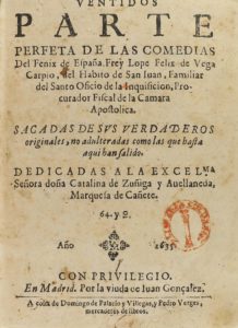 .1635.. LIBRO: .(LITERATURA).. .VEGA, LOPE DE:. .VENTIDOS PARTE PERFETA DE LAS COMEDIAS. Del Fenix de España Frey Lope Felix de Vega Carpio, del Habito de San Iuan, Familiar del Santo Oficio de la Inquisición, Procurador fiscal de la Camara...