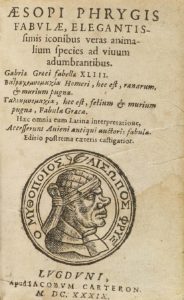 .1639.. LIBRO: .(LITERATURA).. .AESOPI PHYRGIS:. .FABULAE ELEGANTISSIMIS ICONIBUS VERAS ANIMALIUM SPECIES AD VIUUM ADUMBRANTIBUS.. Lugduni: Apud Iacobum Carteron, 1639. 12º. 412 p. + 4 h. Ilusr. con xilografías en el texto. A dos columnas con...