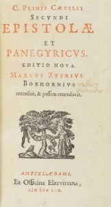 .1659.. LIBRO: .(LITERATURA CLÁSICA).. .PLINII CAECILII SECUNDI, C.:. .EPISTOLAE ET PANEGYRICUS.. Amstelaedami: Ex Officina Elzeviriana, 1659. 12º. 12 h. + 404 p. + 14 h. Algunas antiguas anotaciones marginales. Enc. en pasta española, tejuelo,...