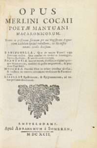 .1692.. LIBRO: .(LITERATURA).. .FOLENGO, TEOFILO [MERLINUS COCCAIUS]:. .OPUS MERLINI COCAII POETAE MANTUANI MACARONICORUM.. Amstelodami: Abrahamum a Someren, 1692. 8º. 16 h. (incluido retrato grabado del autor) + 419 p. + 2 h. Portada con marca...