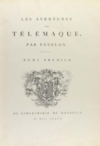.1785.. LIBRO: .(LITERATURA).. .FÉNELON [FRANÇOIS DE SALIGNAC DE LA MOTHE]:. .LES AVENTURES DE TÉLÉMAQUE PAR.... [Paris]: Imp. de Monsieur, 1785. 2 vol. en folio menor. Vol. I: 6 h. + 309 p. + 36 lám. grabadas. Vol. II: 2 h. + 297 p. + 1 h. + 36...