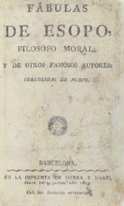 .1815.. LIBRO: .(LITERATURA-FÁBULAS).. .ESOPO:. .FÁBULAS.. Madrid: Imp. de Sierra y Martí, 1815. 8º menor. 364 p. + 2 h. Varias hojas laminadas, entre ellas la portada. Ilustrado con numerosas viñetas xilográficas en el texto. Enc. en pergamino...