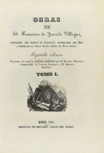 .1841-1843.. LIBRO: .(LITERATURA).. .QUEVEDO VILLEGAS, FRANCISCO DE:. .OBRAS DE.... Madrid: Imp. Mellado, 1841-1843. 3 vol. 8º mayor. I y II: XII + 244 p. + 1 h. y 388 p. + 1 h. III y IV: 400 p. + 2 h. y 411 p. + 2 h. V: 374 p. + 3 h. Obra completa...