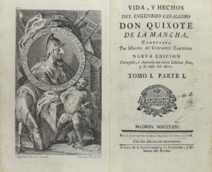 .1771.. LIBRO: .(CERVANTINA).. .CERVANTES SAAVEDRA, MIGUEL DE:. .VIDA Y HECHOS DEL INGENIOSO CABALLERO DON QUIXOTE DE LA MANCHA.. Madrid: Imp. Ibarra, 1771. 4 vol. en 8º. I: Frontis grabado + 160 + 427 p. y 12 lám. grabadas. II: Frontis grabado + 2...