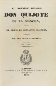.1833.. LIBRO: .(CERVANTINA).. .CERVANTES, MIGUEL DE:. .EL INGENIOSO HIDALGO DON QUIJOTE DE LA MANCHA, COMPUESTO POR... Y COMENTADO POR DIEGO CLEMENCIN.. Madrid: Eusebio Aguado, 1833-1839. 6 vol. en 8º mayor. I: Retrato + LXXI + 309 p. + 1 h + 1...