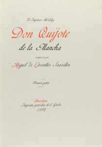 .1892.. LIBRO: .(CERVANTINA).. .CERVANTES SAAVEDRA, MIGUEL DE:. .EL INGENIOSO HIDALGO DON QUIJOTE DE LA MANCHA.. Barcelona: Imp. Gorchs, 1892. 6 vol. en 4º. I: Portada grabada + XXVIII + 1 h. + 385 p. + 11 lám. II: 397 p. + 5 lám. III: 415 p. + 1...