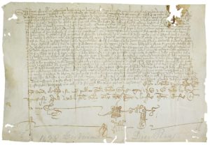 .1428.. MANUSCRITO: .(CORDOBA).. .DOCUMENTO FIRMADO ANTE NOTARIO.. Manuscrito sobre pergamino de 21 x 31 cm. Letra procesal castellana. Relativo al monasterio de Santo Domingo de Escala Ca[e]ly. Signum notarial. Pequeñas faltas periféricas.