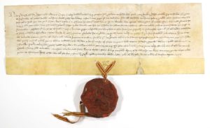 1337. En Cataluña conocido como Pere III ´el del punyalet´. El documento conserva el sello colgante de cera muy completo y en una sola pieza, con cordón de dos colores, de 9 cm de diámetro. Privilegio real de nobleza a favor de Jacob de Castro y Pons. Aplanado y conservado profesionalmente.