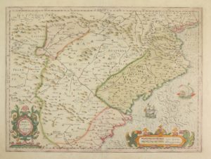.1620 ca.. MAPA: .(CATALUNYA-ARAGÓN).. .[HONDIUS; MERCATOR]:. .ARRAGONIA ET CATALONIA.. Mapa grabado al cobre, 35 x 46,5 cm huella, 40 x 51 cm papel. Suave coloreado. Manchita en la parte inferior del pliegue central.