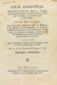 .1795.. LIBRO: .(ATLAS).. .VAZQUEZ, FRANCISCO:. .ATLAS ELEMENTAR. METODO NUEVO, BREVE, FACIL, DEMOSTRATIVO PARA APRENDER LA GEOGRAFÍA POR SI MISMO, Ó ENSEÑARLA AUN Á LOS NIÑOS.. Madrid: Oficina de Pantaleon Aznar, 1795. 8º mayor. 5 h. + 222 p....