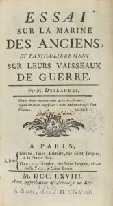 .1768.. LIBRO: .(MARINA-MILITARIA).. .DESLANDES, M.:. .ESSAI SUR LA MARINE DES ANCIENS, ET PARTICULIEREMENT SUR LEURS VAISSEAUX DE GUERRE.. Paris: Chez David et Ganeau, 1768. 8º menor. Frontis grabado plegado + XXI p. + 297 p. + 9 lám. grabadas, 7...