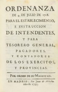 .1735.. LIBRO: .(MILITARIA-DERECHO).. .ORDENANZA DE 4 DE JULIO DE 1718. PARA EL ESTABLECIMIENTO, E INSTRUCCION DE INTENDENTES. Y PARA TESORERO GENERAL, PAGADORES Y CONTADORES DE LOS EXERCITOS, Y PROVINCIAS.. Madrid: Juan de Ariza, 1735. 8º menor....