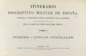 .1866-1867.. LIBRO: .(MILITARIA).. .ITINERARIO DESCRIPTIVO MILITAR DE ESPAÑA. FORMADO Y PUBLICADO POR EL DEPÓSITO DE LA GUERRA.. Madrid: Imp. y Estereotipia M. Rivadeneyra, 1866-67. 8 vol. en 8º mayor apaisado. I: .Índices y líneas generales,....