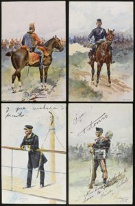 .1900 ca.. POSTALES: .CUSACHS:. .9 POSTALES DE MILITARES, VARIAS A CABALLO.. Alguna manchita. Circuladas.