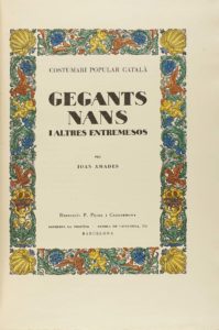 1934. — LIBRO : (BIBLIOFILIA). — AMADES, JOAN : — GEGANTS, NANS I ALTRES ENTREMESOS. — Barcelona : Imprenta La Neotipia, 1934. — Folio menor. 227 p. + 2 h.