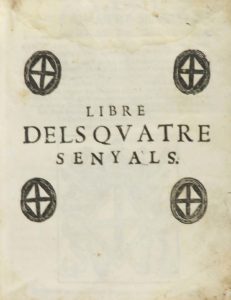 1698. — LIBRO : (DERECHO-CATALUNYA). — LIBRE DELS QUATRE SENYALS DEL GENERAL DE CATALUNYA. CONTENINT DIVERSOS CAPITOS DE CORT, ORDINACIONS, DECLARACIONS, PRIVILEGIS, Y CARTAS REALS FAHENTS PER LO DIT GENERAL. — Barc.[elona] : casa de Rafel...