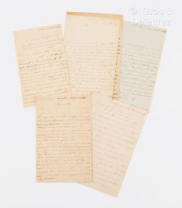 ORLEANS Clémentine d’ (1817-1907) Princesse de SAXE-COBOURG, fille de Louis-Philippe, épouse d’Auguste de Saxe-Cobourg (1818-1881). 5 L.A.S. Paris, Laeken, Bruxelles, Cobourg, datées du 19 octobre 1824 au 4 janvier 1847. 10 pp. ½ in-8. Deux de ces lettres sont adressées à son frère le Prince de Joinville. La première lettre porte une apostille de sa sœur Louise. Riche correspondance familiale.