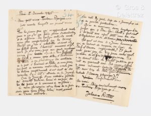 RICTUS Jehan (1867-1933). Poète français. L.A.S. à Gaston Picard, Paris, 5 décembre 1926. 2 pp. in-4. Très belle lettre de Rictus en réponse à une enquête de Picard sur la jeunesse littéraire. « [ ] Tous les jeunes gens [ ] sont même plus compréhensifs que les vieux maîtres que j’eus à combattre et dont il me fallut forcer l’hostilité sournoise et féroce Je n’ai donc, pour ma part, remarqué aucun fossé séparant les « Enfants du siècle » comme vous dites, d’écrivains et poètes de ma génération. Au contraire de la part d’écrivains et poètes, de mon genre, qui, faute de ressources matérielles, n’ont pu se réaliser complètement et ont droit à des revanches, il y a tout à attendre de la jeunesse. C’est la jeunesse d’une certaine période qui recueillit Verlaine, honni et méprisé de ses pairs et le couronna de gloire. Le même phénomène est en train de se produire pour Léon Bloy, hélas, mort avant de l’avoir entrevu. [ ] Qu’on se souvienne donc toujours à ce propos que « Don Quichotte » fût écrit à soixante ans après toute une vie de tribulations et de déboires [ ] ».