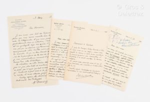 SCIENTIFIQUES. 4 documents. CALMETTE Albert (1863-1933) médecin et bactériologiste. 3 L.A.S. Lille, Paris, 6 juillet 1911, 14 janvier 1916 et 27 décembre 1923. 3 pp. et 2 demi-pages. in-8. en-tête « Institut Pasteur » (Lille et Paris). Le 6 juillet, il évoque une promesse faite avec son frère Gaston à un collaborateur (Gaston fut assassiné en 1914 par Madame Henriette Caillaux), le 27 décembre Il évoque des médicaments pour soigner la Tuberculose ; DAVIDOFF Mikhail Mikhailovich (1896-1933) L.A.S. Villefranche -sur-mer, le 5 mars 1918. 1 p. in-8 en-tête « Station Zoologique russe ». Intéressante lettre sur les siphonophores, il annonce à son correspondant « Je vous envoie une liste des Siphonophores que nous avons recueillis dans la rade de Villefranche et que nous possédons, partiellement, dans nos collections [ .] » il conseille « il y a un beau travail de C. Vogt sur les Siphonophores de la mer de Nice » que je vous recommanderais vivement et qui se trouve dans notre bibliothèque [ ] ». Au dos, d’une autre main, une liste de variétés de Siphonophores.