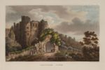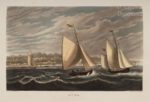 CALVERT (Frederick), ROBERTS (Percy). The Isle of Wight illustrated, in a series of coloured views, engraved in aqua-tint by Mr. Percy Roberts London, G. H. Davidson, 1846. In-4, [3] f., 63 p., fr., pl., cartonnage d’éditeur beige à rayures roses, dos lisse orné, titre doré, double filet doré en encadrement du plat supérieur, avec titre au centre dans un médaillon doré, médaillon doré au plat inf., tranches dorées (accroc en tête du dos, coins et coiffes frottés, taches claires au plat inf. ; papier du texte un peu jauni, mouill. claire au coin du frontispice, et en marges de certaines pl.). Edition originale et premier tirage - qui se distingue notamment par la planche légendée « Bunbridge Ferry », pour « Bembridge Ferry » - de ce bel album consacré à l’île de Wight. L’illustration comprend un frontispice lithographié en bistre par E. Walker, une carte gravée et coloriée, et 20 belles planches fidèlement gravées à l’aquatinte par Percy Roberts et finement coloriées à la main à l’époque, d’après les dessins et peintures du peintre de paysages et de marines Frederick Calvert (c.1785-c.1845). (Abbey, Scenery, 351 ; Bobins II, 628).